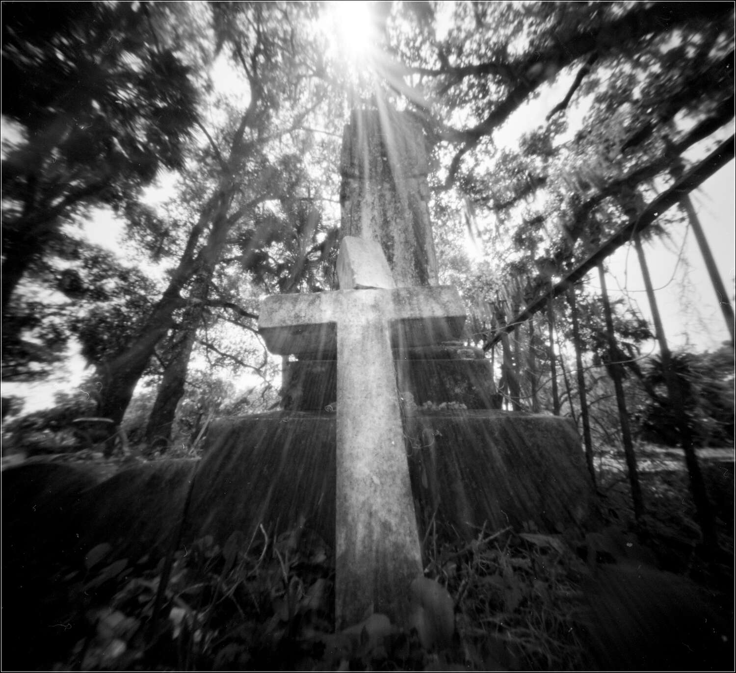 Very old cemeteries are beginning to appeal to me more and more. I think you can make lovely photos in cemeteries, but the older ones, with overarching trees, offer lots of photo opportunities. The sterility of modern, giant fields of headstones don’t do it for me. But the very old ones, which can be tough to find, are great. As for technique, my current favorites are pinhole and black-and-white Infrared. These photos are all pinhole taken on a Reality-so-Subtle 6×6 camera with Kentmere100 film. I am increasingly using this film, as it has good tonality, decent reciprocity curves, and a