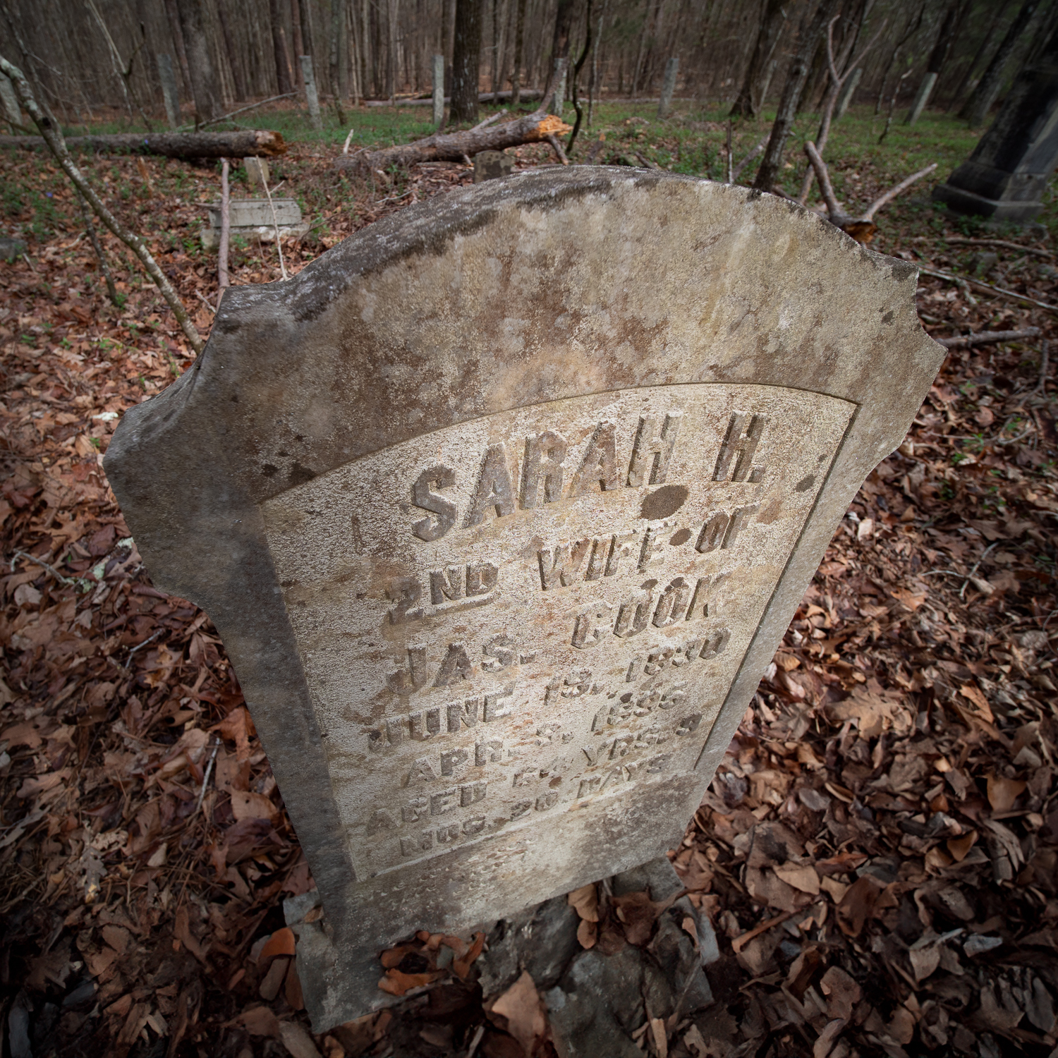 Near Covington Ga, my family has owned a large plat of land for about 50 years. On that land is a 19th/20th century cemetery founded by the Cook family. There are about 30-40 graves there from the mid 1800’s to the early 1900’s. There are only a few well preserved and many of the larger stones have been either knocked down intentionally or fallen down of their own accord. There are mature trees on the site. There is a 5×5 stone pillered fence with very old, flat twisted barbed wire around it through holes drilled in the fence posts. I can think of how much time it took to drill all of those holes and how much it cost. A lot, I’m sure. My family has allowed access to the cemetery, as we are required to do by law, but it has never been cleaned out or refurbished in any way; it’s just as nature has treated it all these years.